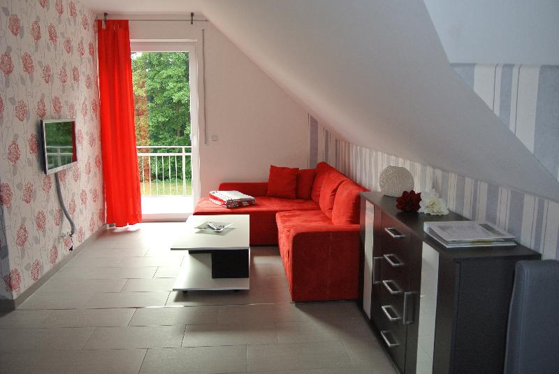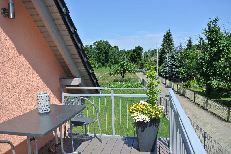 Ferienwohnung „Am Birnenbaum“ im Obergeschoss mit möblierten Balkon und direkten Blick auf`s Storchennest